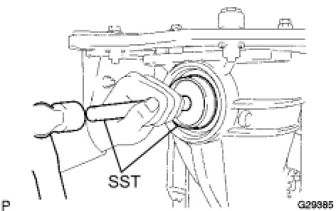 - Do not deform the bearing cage. Set the SST to the center of the differential case.