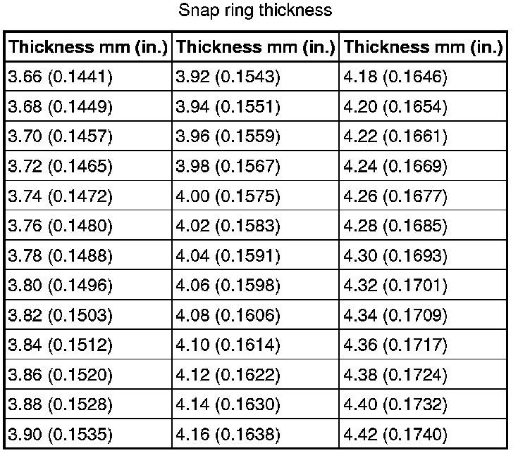- Record the measured backlash to use as a reference for selecting a side gear shaft snap ring.