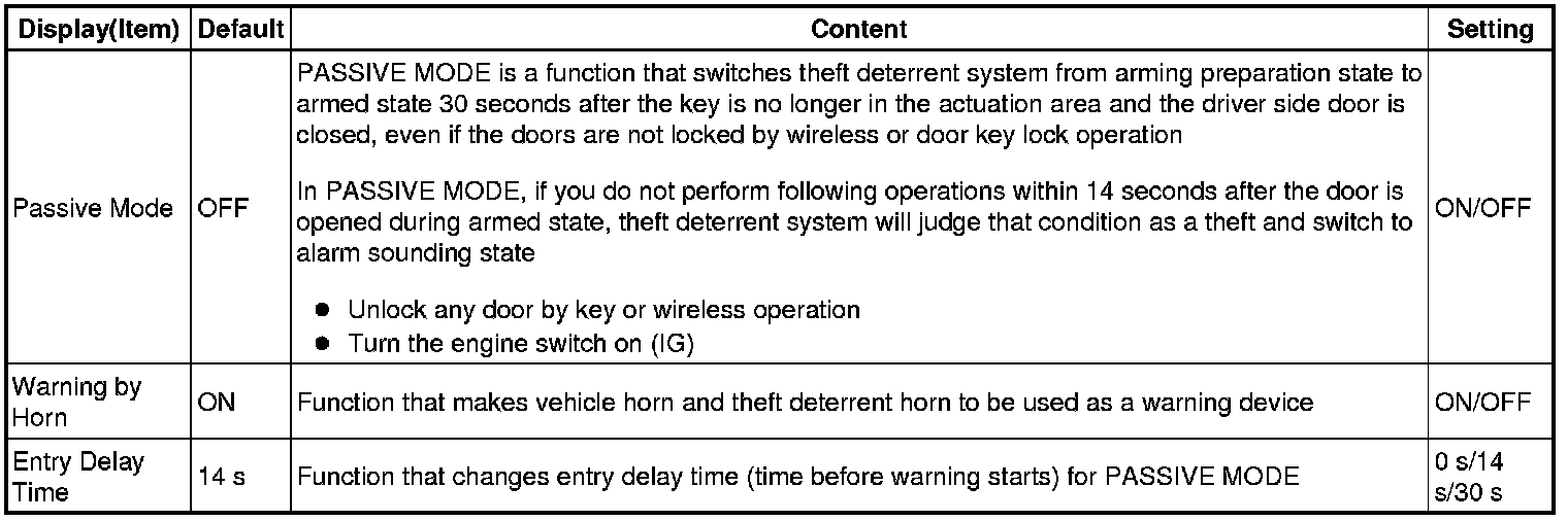 THEFT DETERRENT / KEYLESS ENTRY: THEFT DETERRENT SYSTEM: CUSTOMIZE PARAMETERS