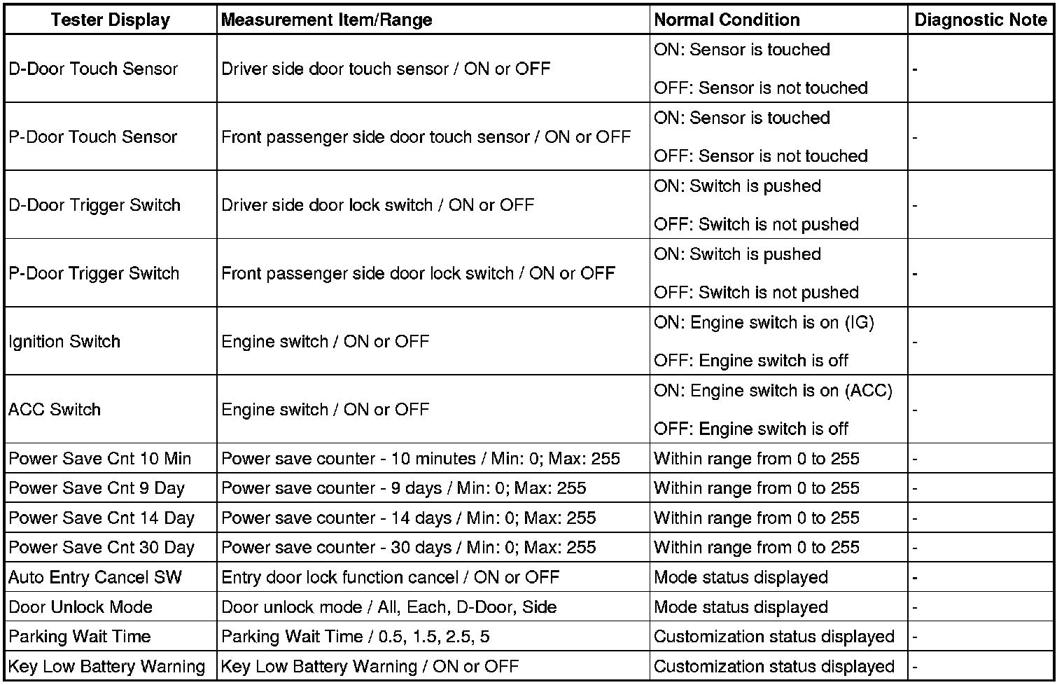 THEFT DETERRENT / KEYLESS ENTRY: SMART ACCESS SYSTEM WITH PUSH-BUTTON START (for Entry Function): DATA LIST / ACTIVE TEST