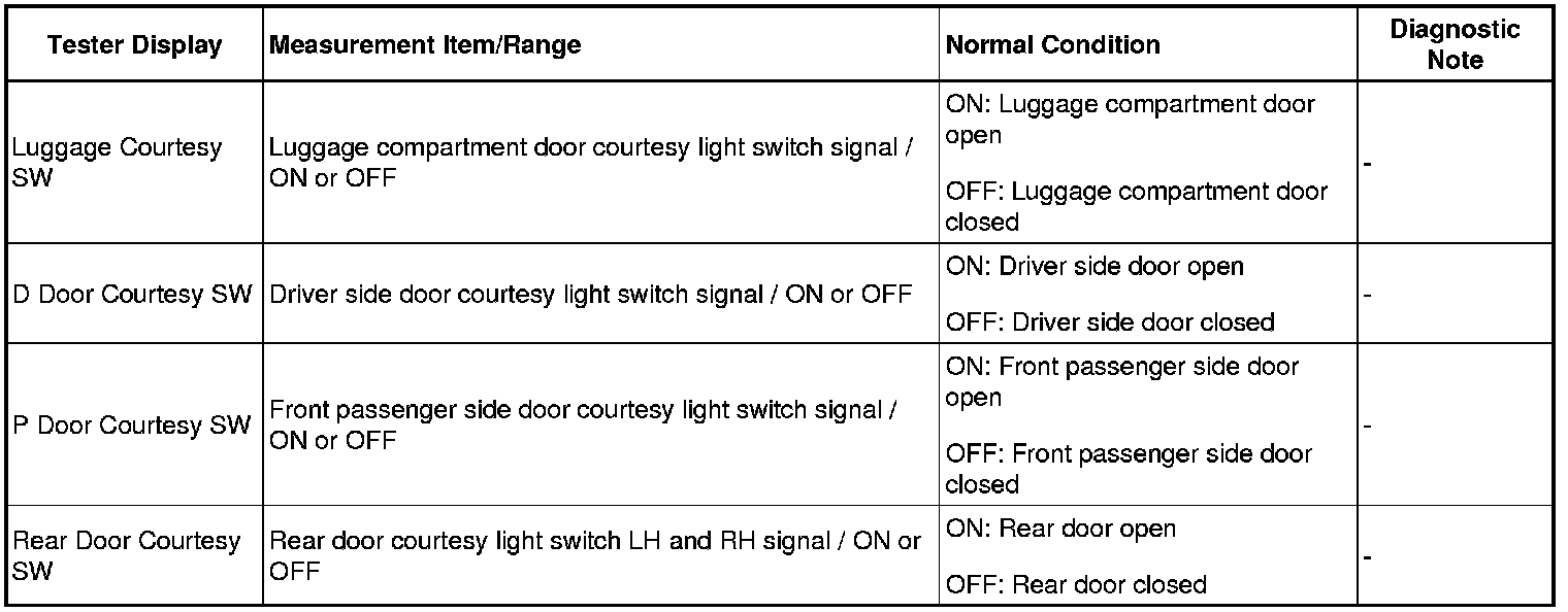 HINT: Using the Techstream to read the Data List allows the values or states of switches, sensors, actuators and other items to be read without removing any parts. This non-intrusive inspection can be very useful because intermittent conditions or signals may be discovered before parts or wiring is disturbed. Reading the Data List information early in troubleshooting is one way to save diagnostic time.