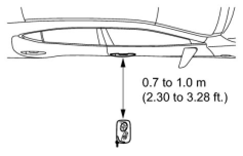 NOTICE: If the key is brought within 0.2 m (0.656 ft.) of the door outside handle assembly, communication is not possible.
