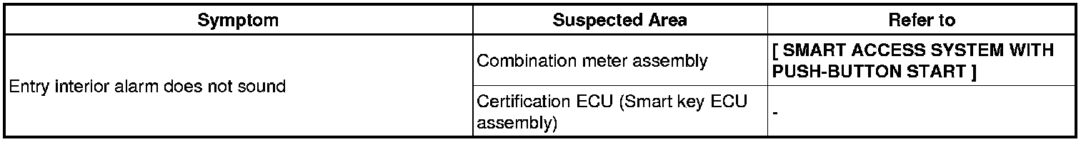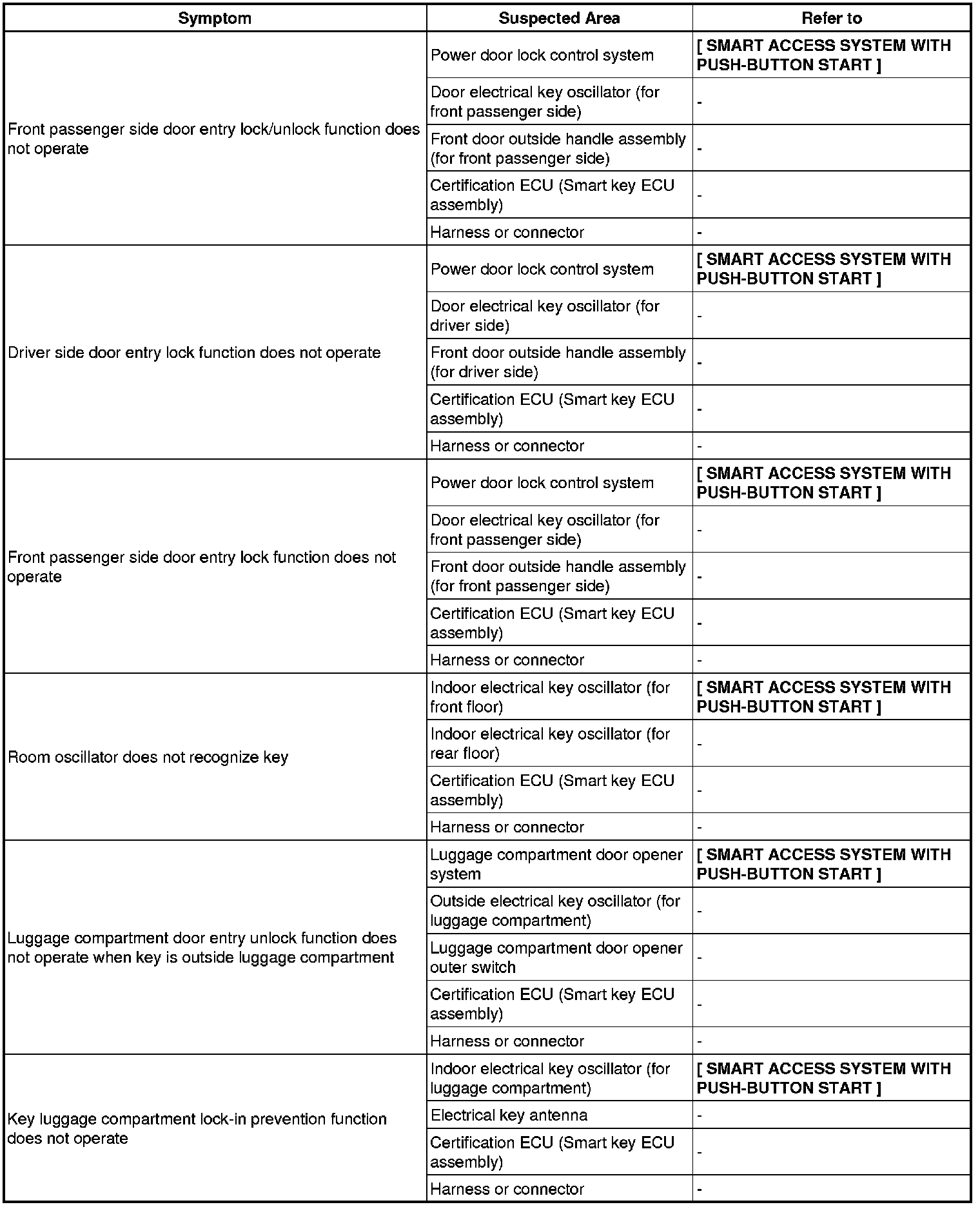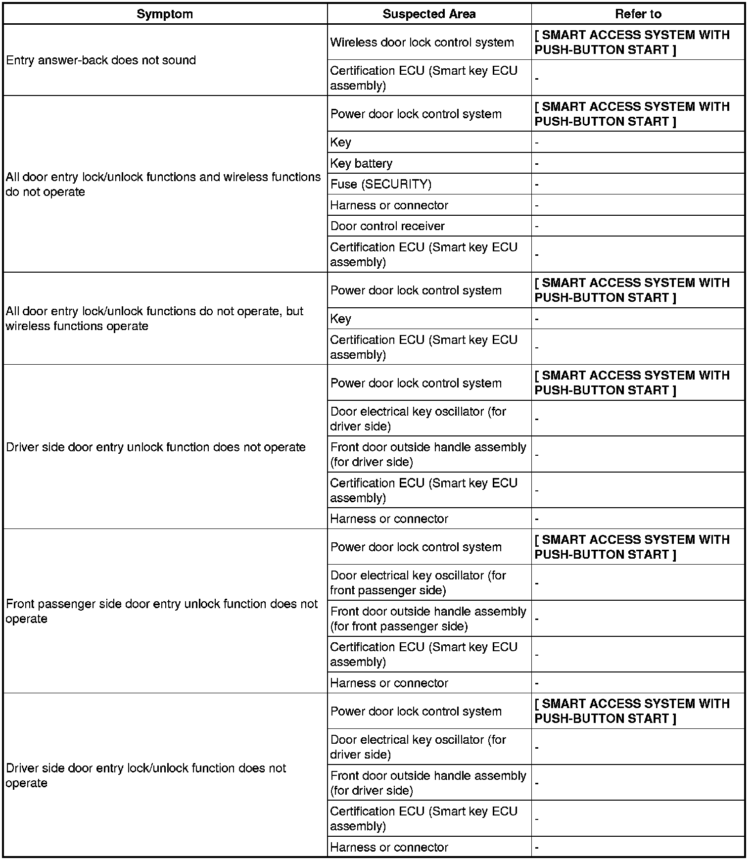 THEFT DETERRENT / KEYLESS ENTRY: SMART ACCESS SYSTEM WITH PUSH-BUTTON START (for Entry Function): PROBLEM SYMPTOMS TABLE