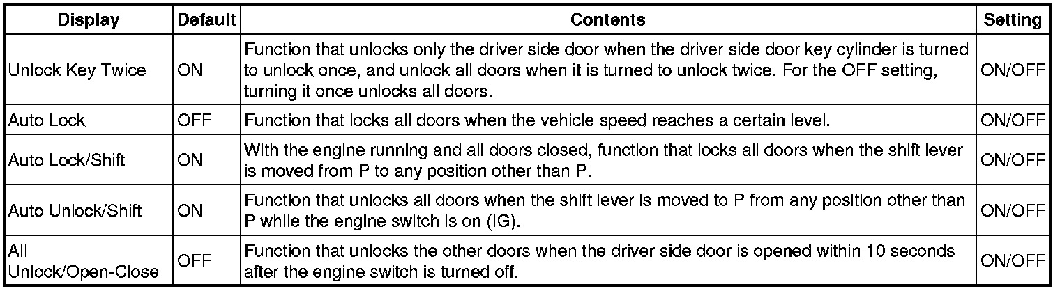 DOOR LOCK: POWER DOOR LOCK CONTROL SYSTEM: CUSTOMIZE PARAMETERS