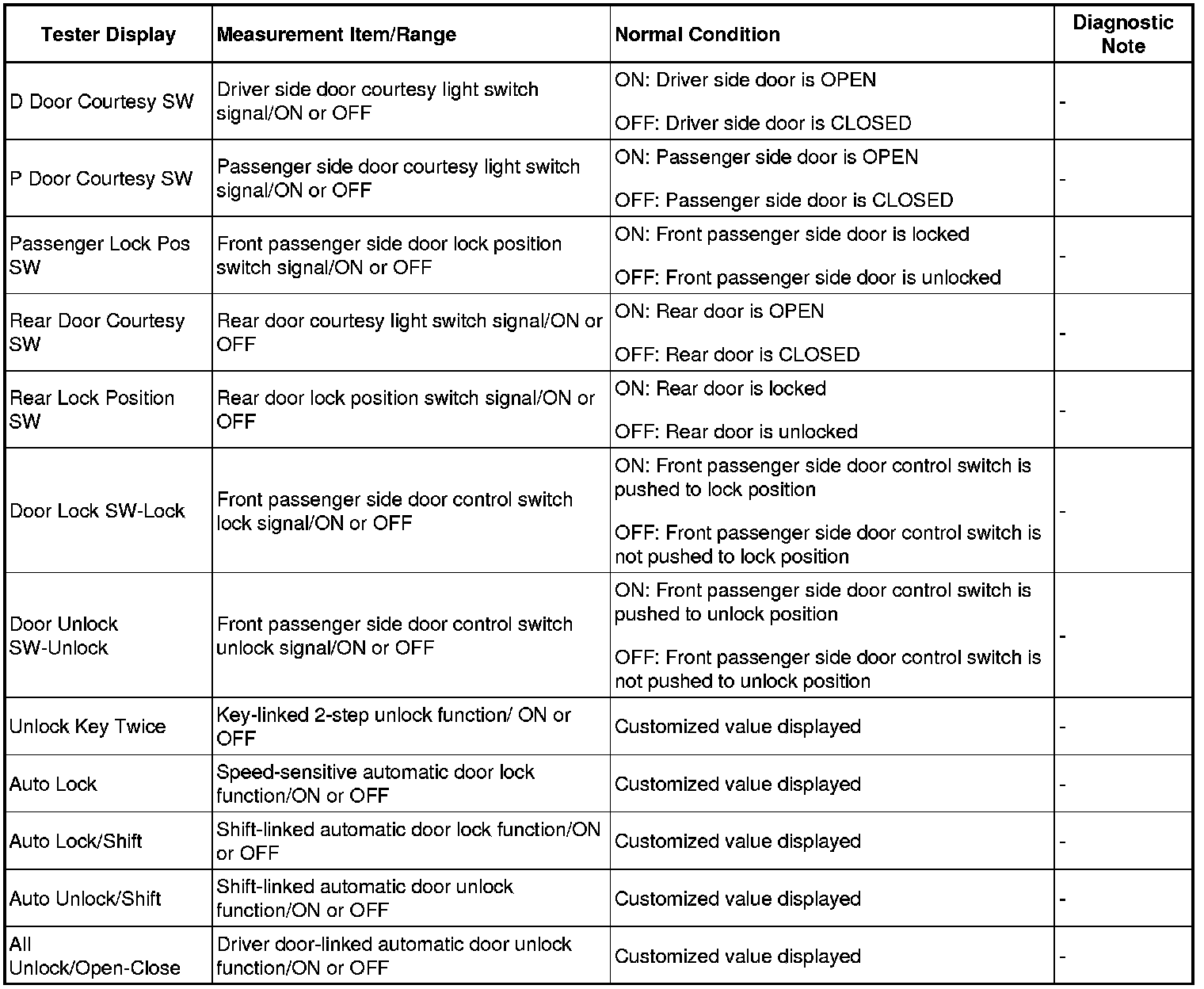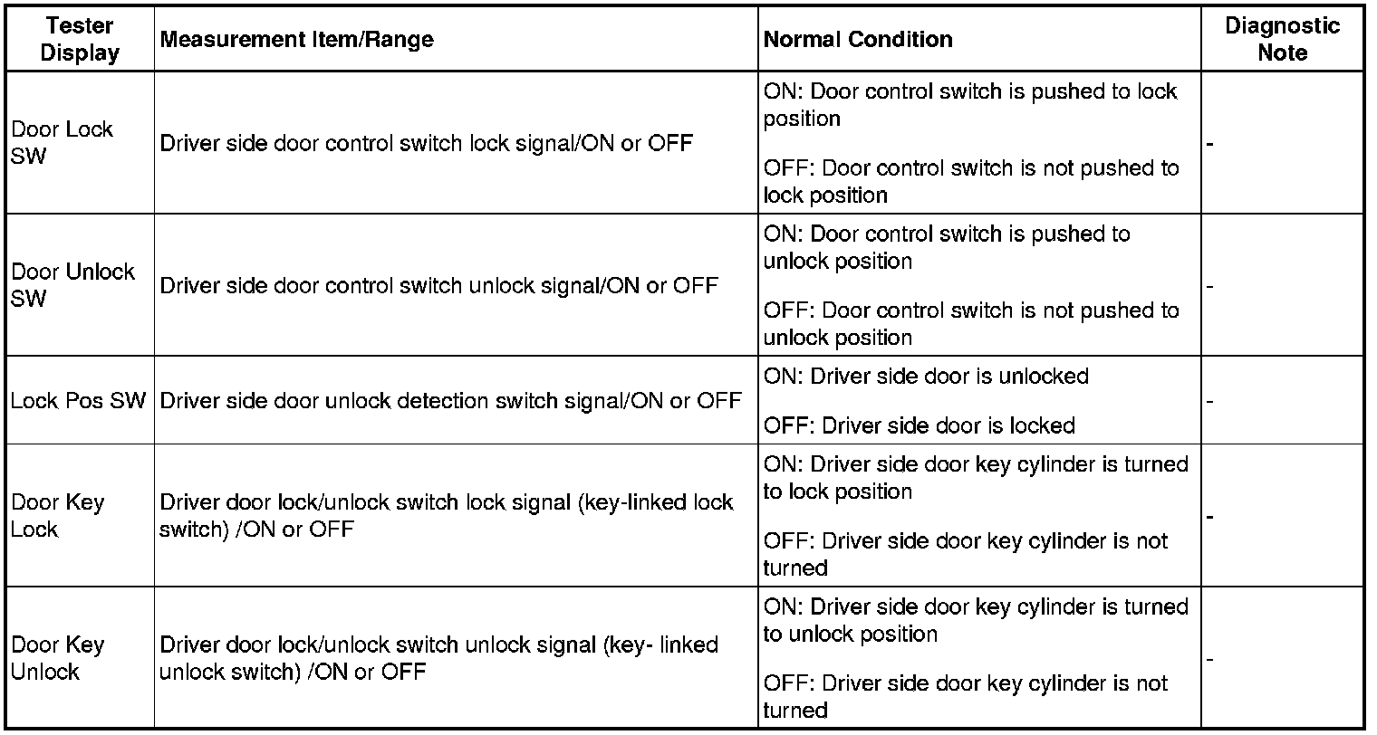 DOOR LOCK: POWER DOOR LOCK CONTROL SYSTEM: DATA LIST / ACTIVE TEST
