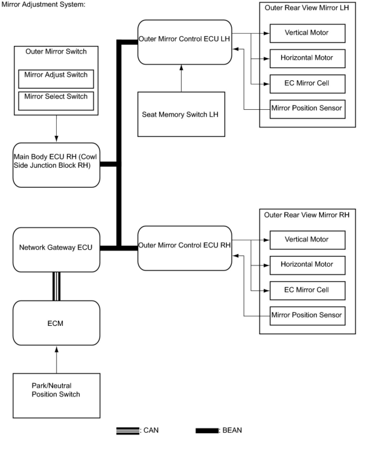 MIRROR (EXT): POWER MIRROR CONTROL SYSTEM: