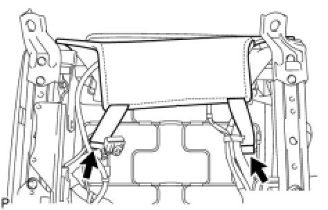 (a) Disengage the 2 hooks and remove the 2 rubber bands of the front seatback board from the front seat frame.