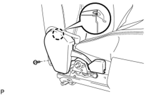 (b) Remove the 2 screws and the lower reclining adjuster inside cover RH.