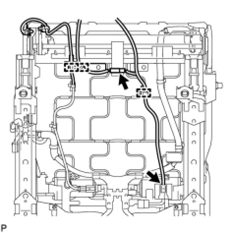 (c) Pull up the bracket of the seat cushion climate control blower as shown in the illustration.