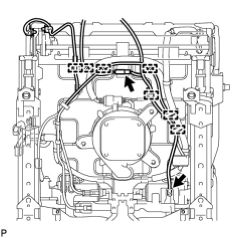 (1) Disengage the 7 clamps and remove the front seat wire from the front seat frame assembly with adjuster.