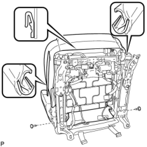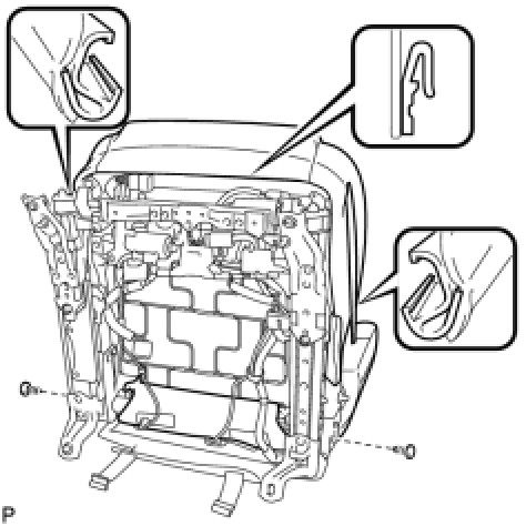 (c) Disengage the 2 hooks and remove the front seatback board sub-assembly.