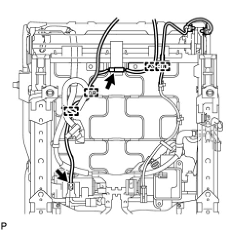 (1) Disengage the 8 clamps and remove the front seat wire from the front seat frame assembly with adjuster.