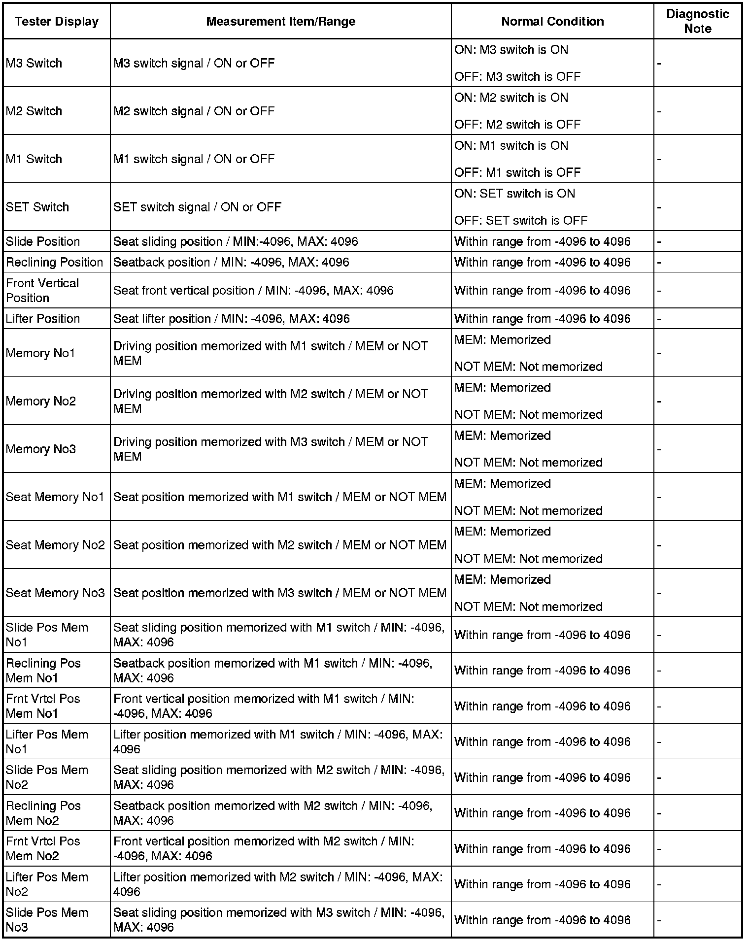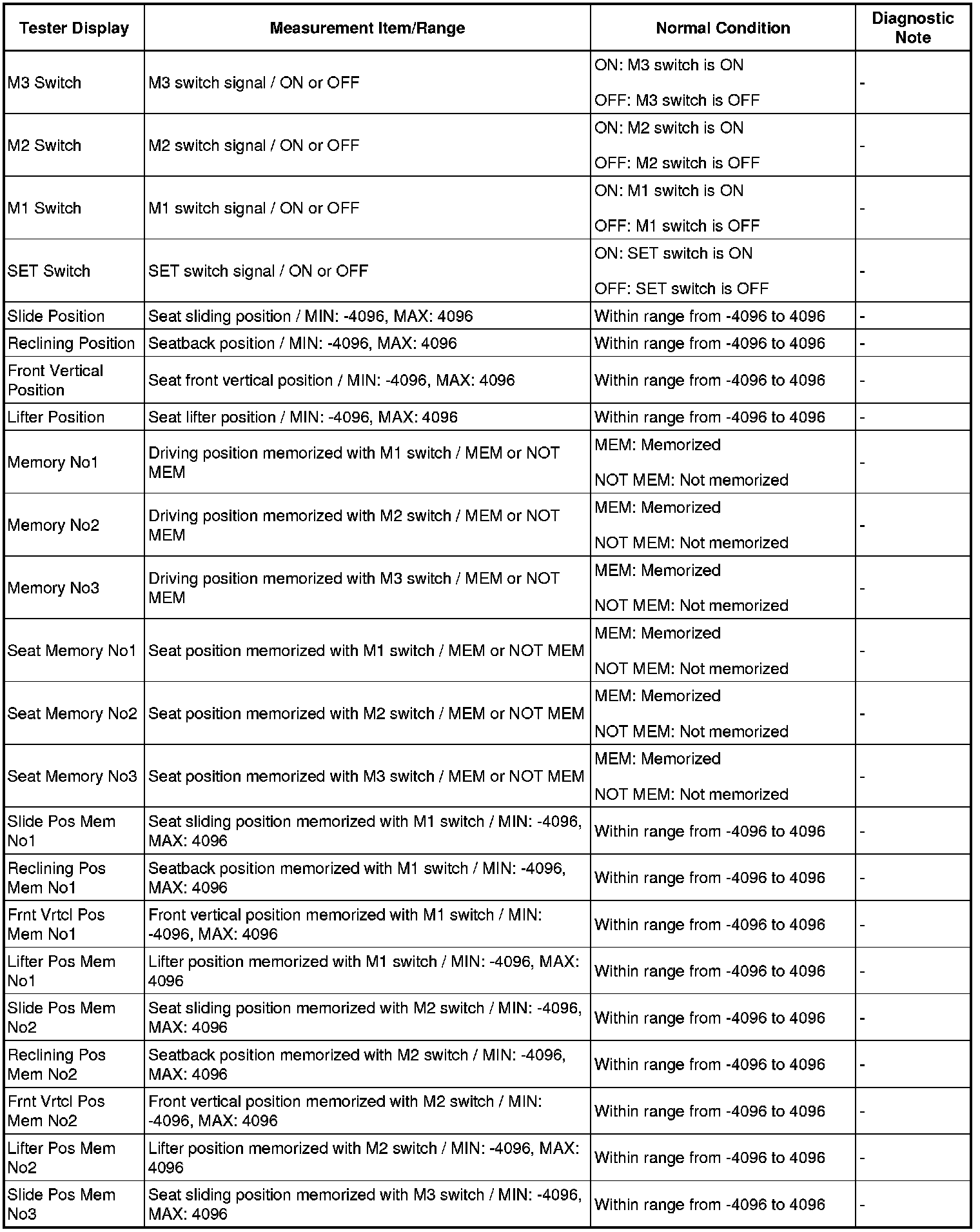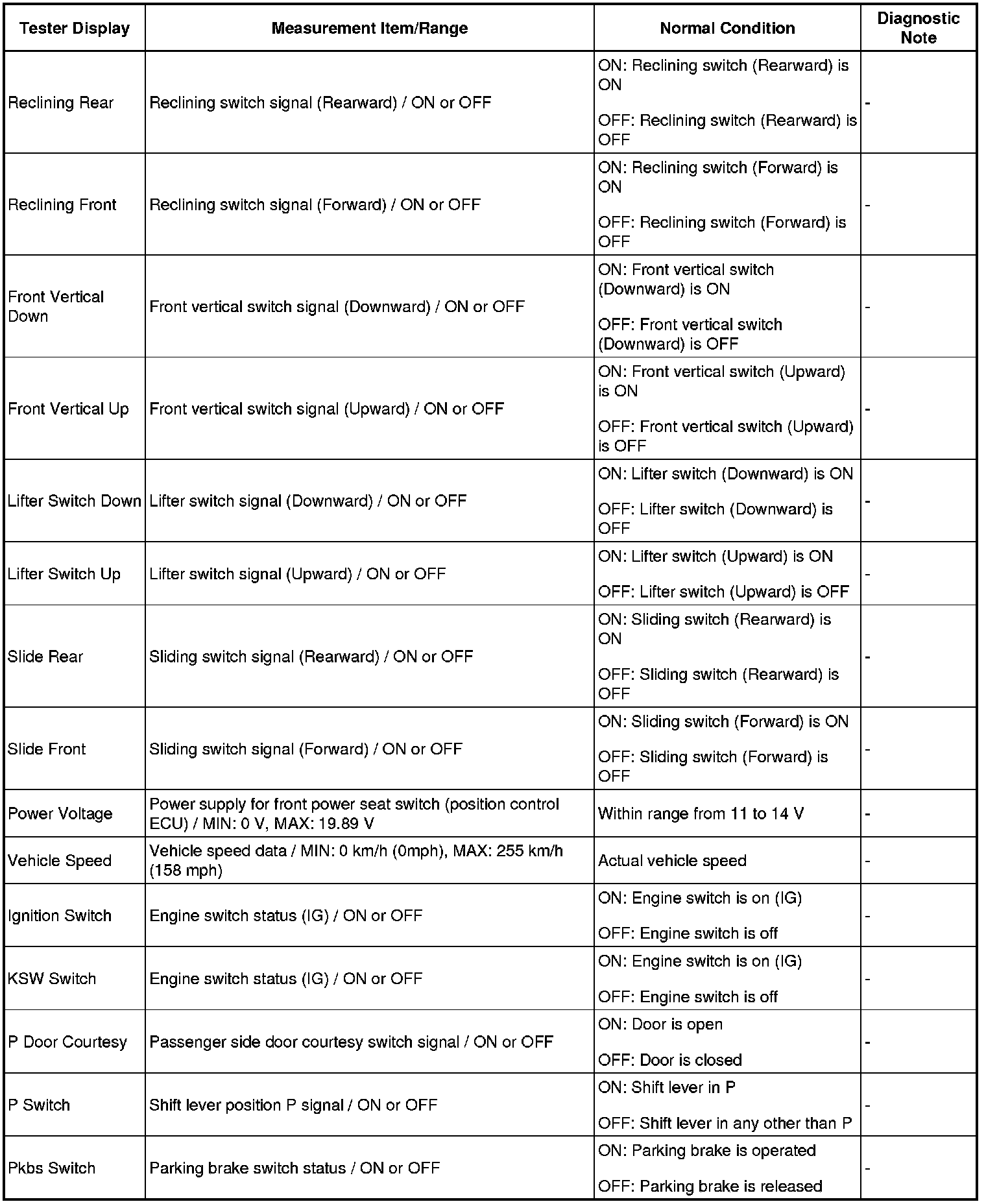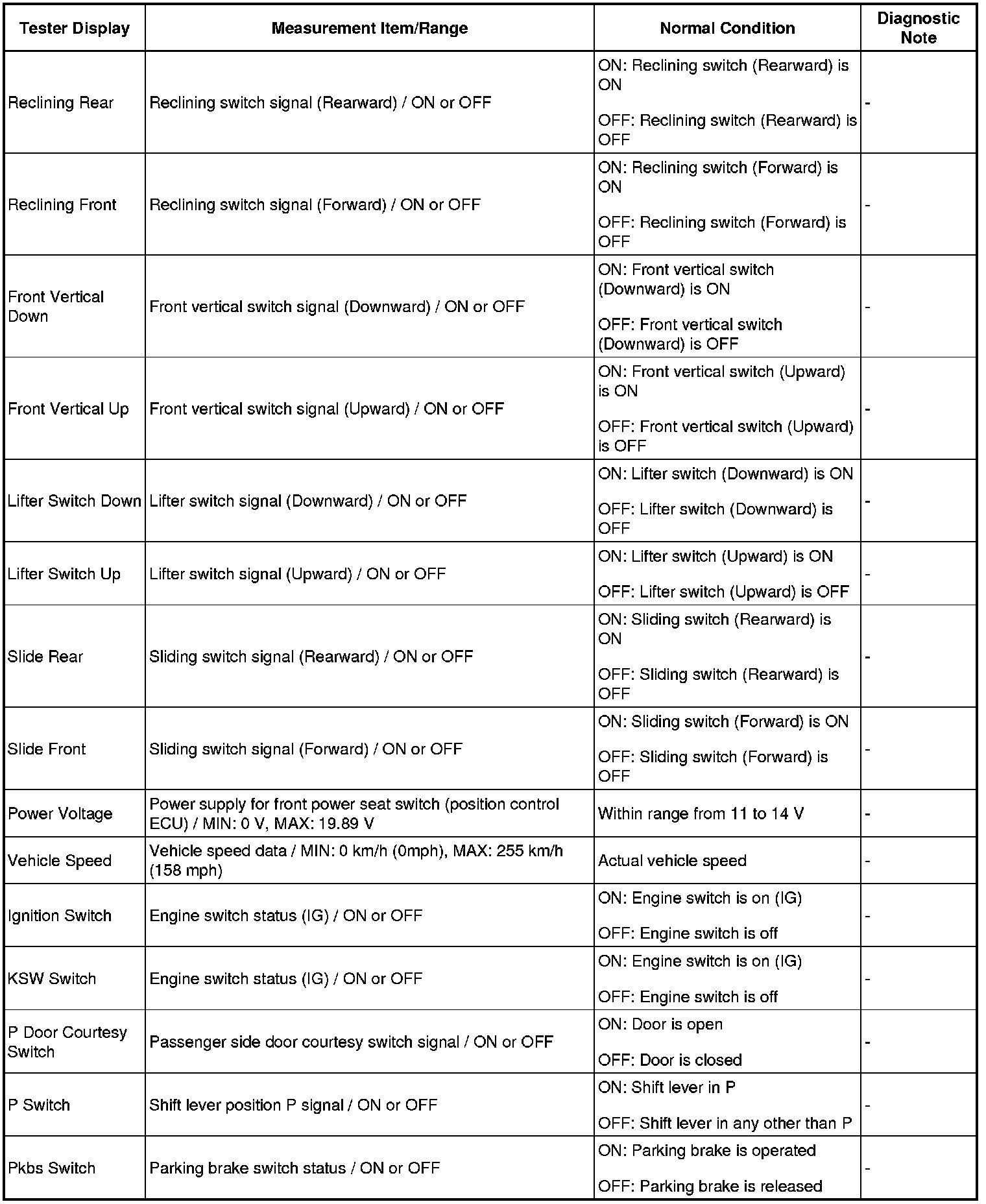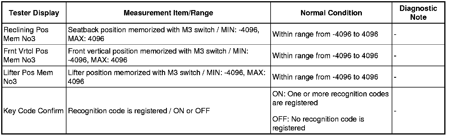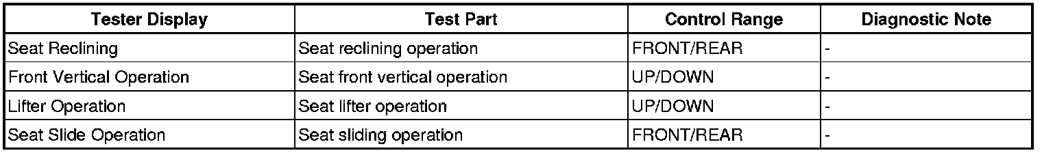 SEAT: FRONT POWER SEAT CONTROL SYSTEM: DATA LIST / ACTIVE TEST