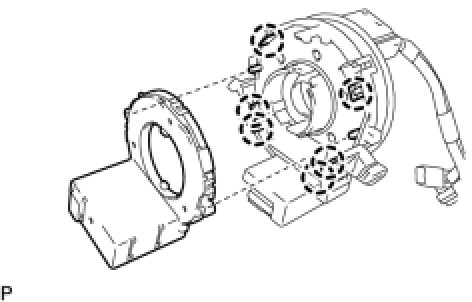 (a) Align the locating pins, engage the 6 claws and install the steering angle sensor to the spiral cable.