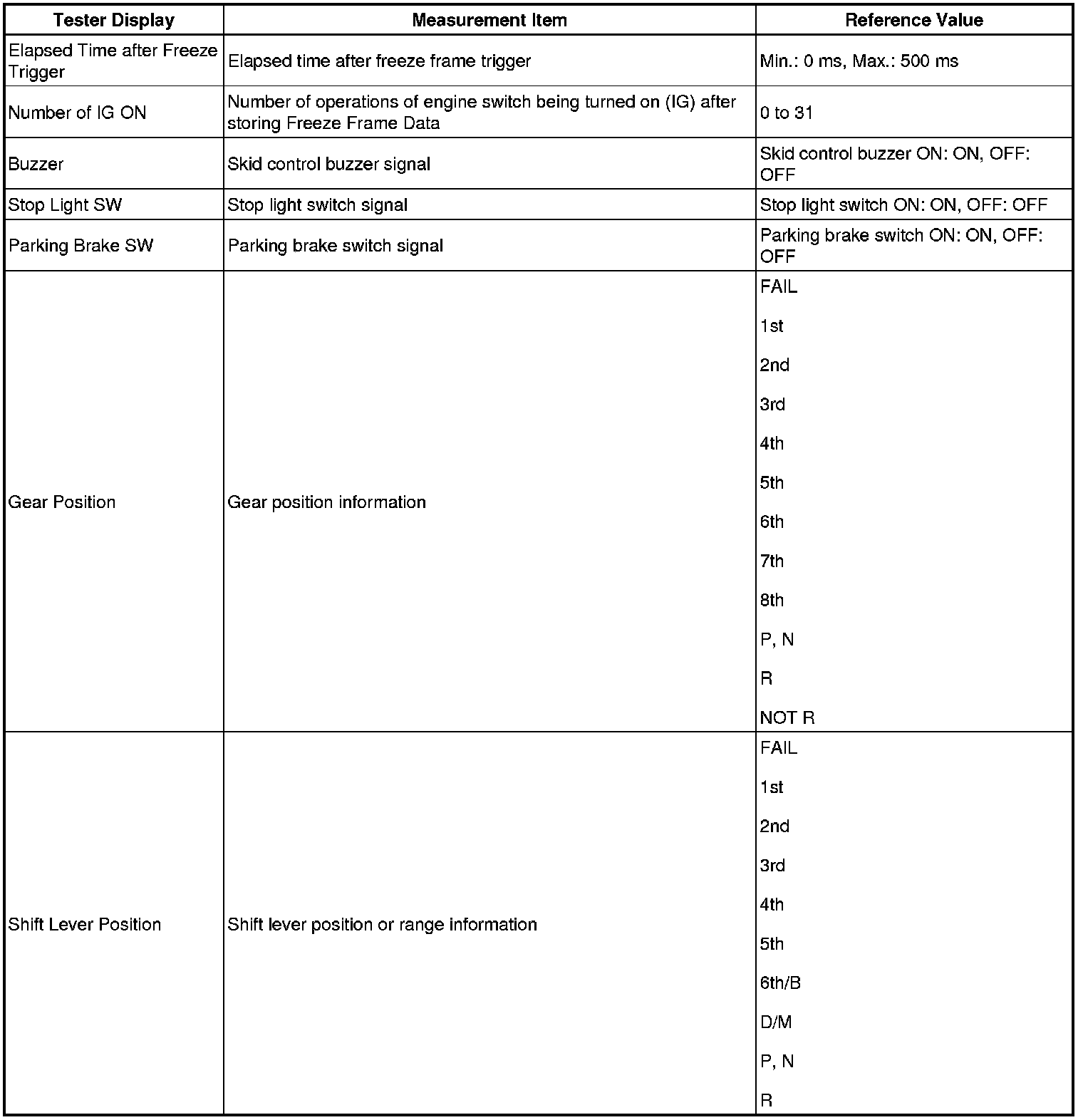 BRAKE CONTROL / DYNAMIC CONTROL SYSTEMS: VEHICLE STABILITY CONTROL SYSTEM: FREEZE FRAME DATA