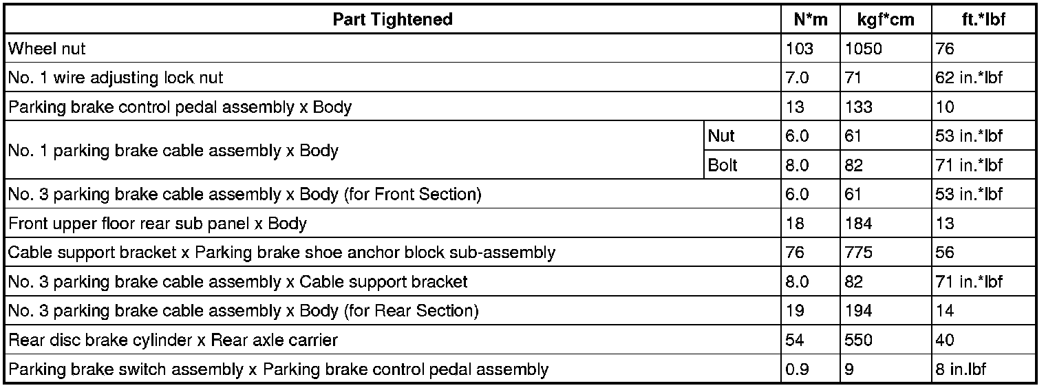 SPECIFICATIONS: PARKING BRAKE: TORQUE SPECIFICATIONS
