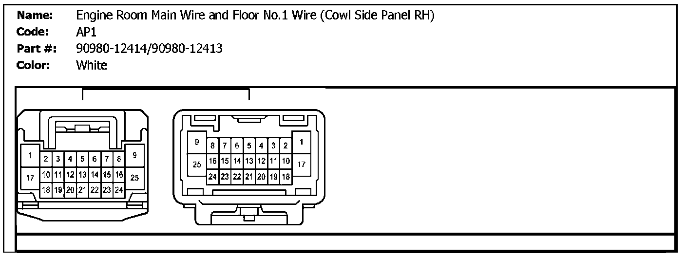AP1 (Engine Room Main Wire And Floor No.1 Wire (Cowl Side Panel RH)):