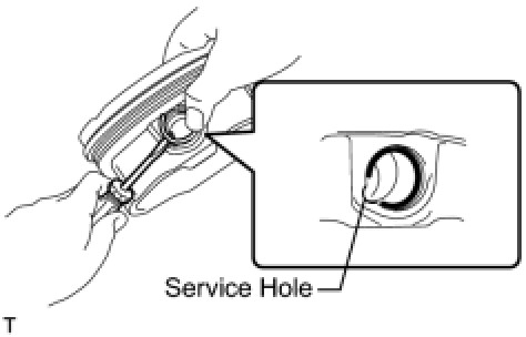 HINT: Be sure that the end gap of the snap ring is not aligned with the service hole of the piston.