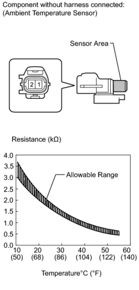 If the resistance is not as specified, replace the ambient temperature sensor.