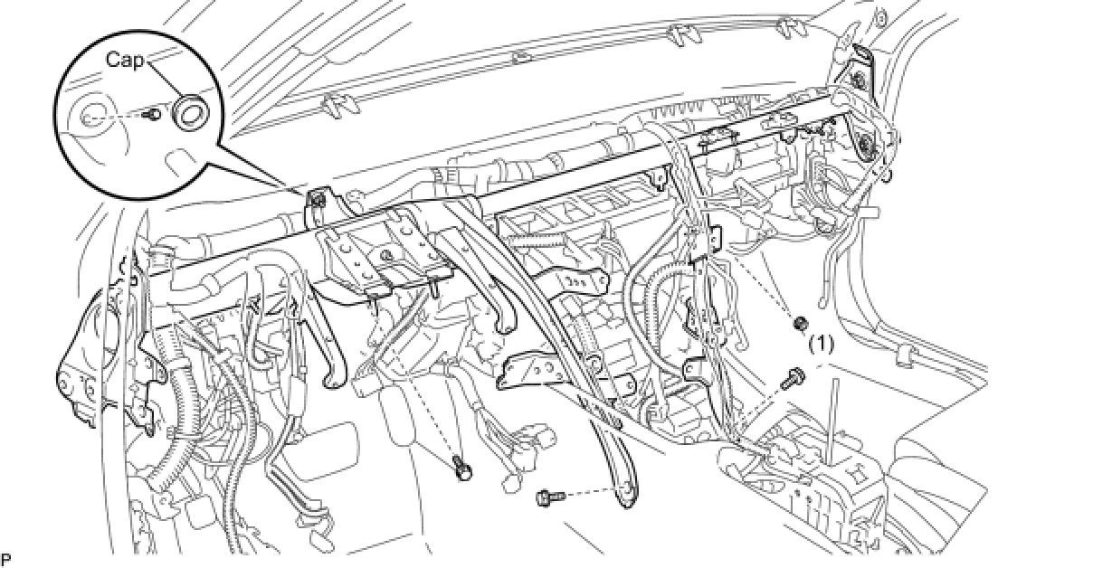 (c) Install the instrument panel reinforcement with the 3 bolts and nut(1).