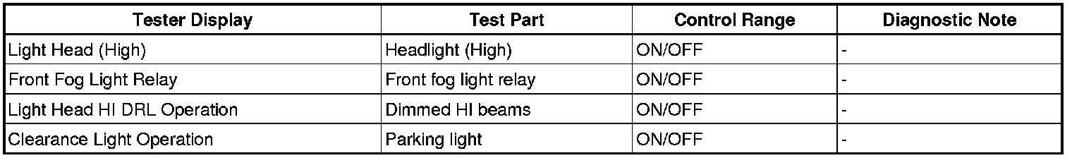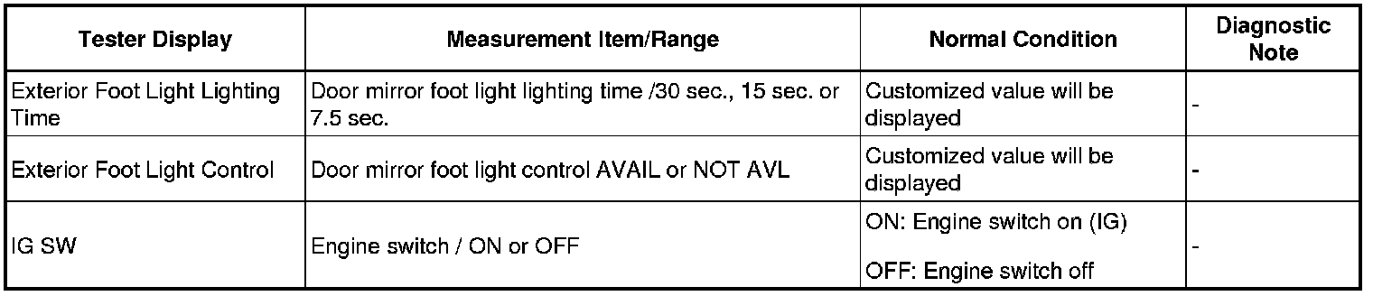 LIGHTING (EXT): LIGHTING SYSTEM: DATA LIST / ACTIVE TEST