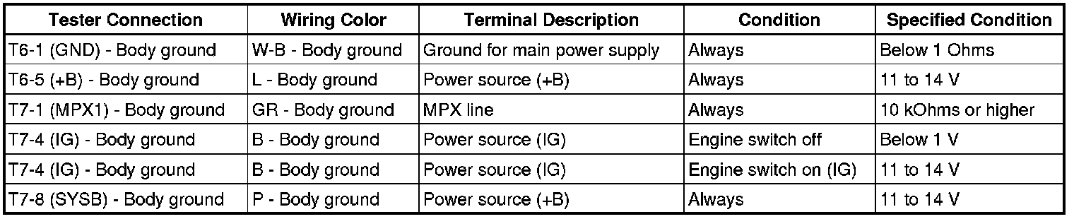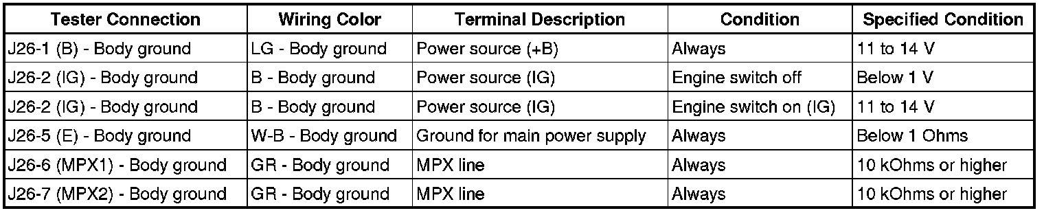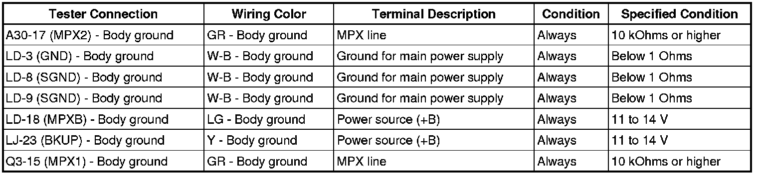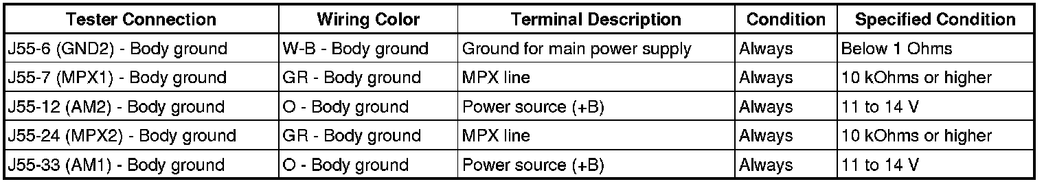 5. CHECK MULTIPLEX NETWORK MASTER SWITCH