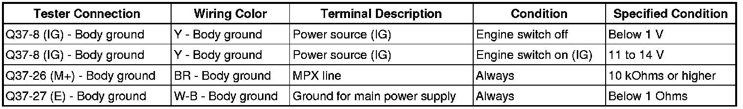If the result is not as specified, there may be a malfunction on the wire harness side.