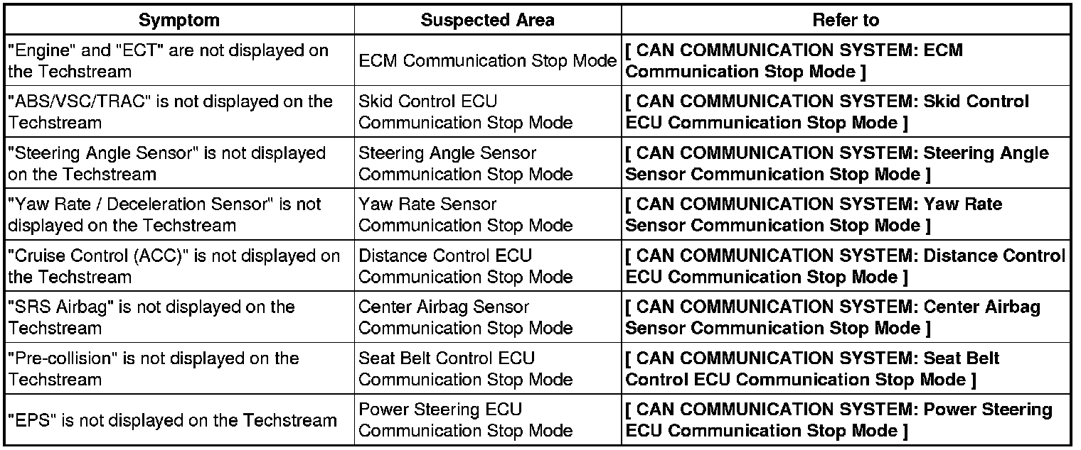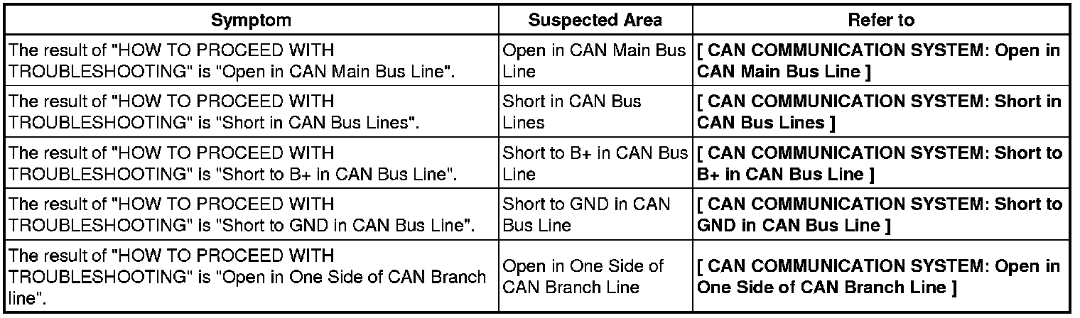 NETWORKING: CAN COMMUNICATION SYSTEM: PROBLEM SYMPTOMS TABLE