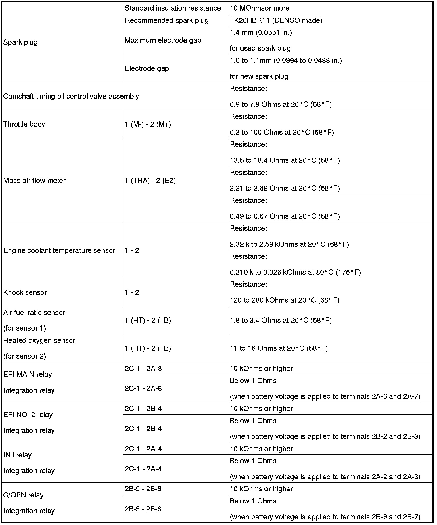 SPECIFICATIONS: 2UR-GSE ENGINE CONTROL: SERVICE DATA