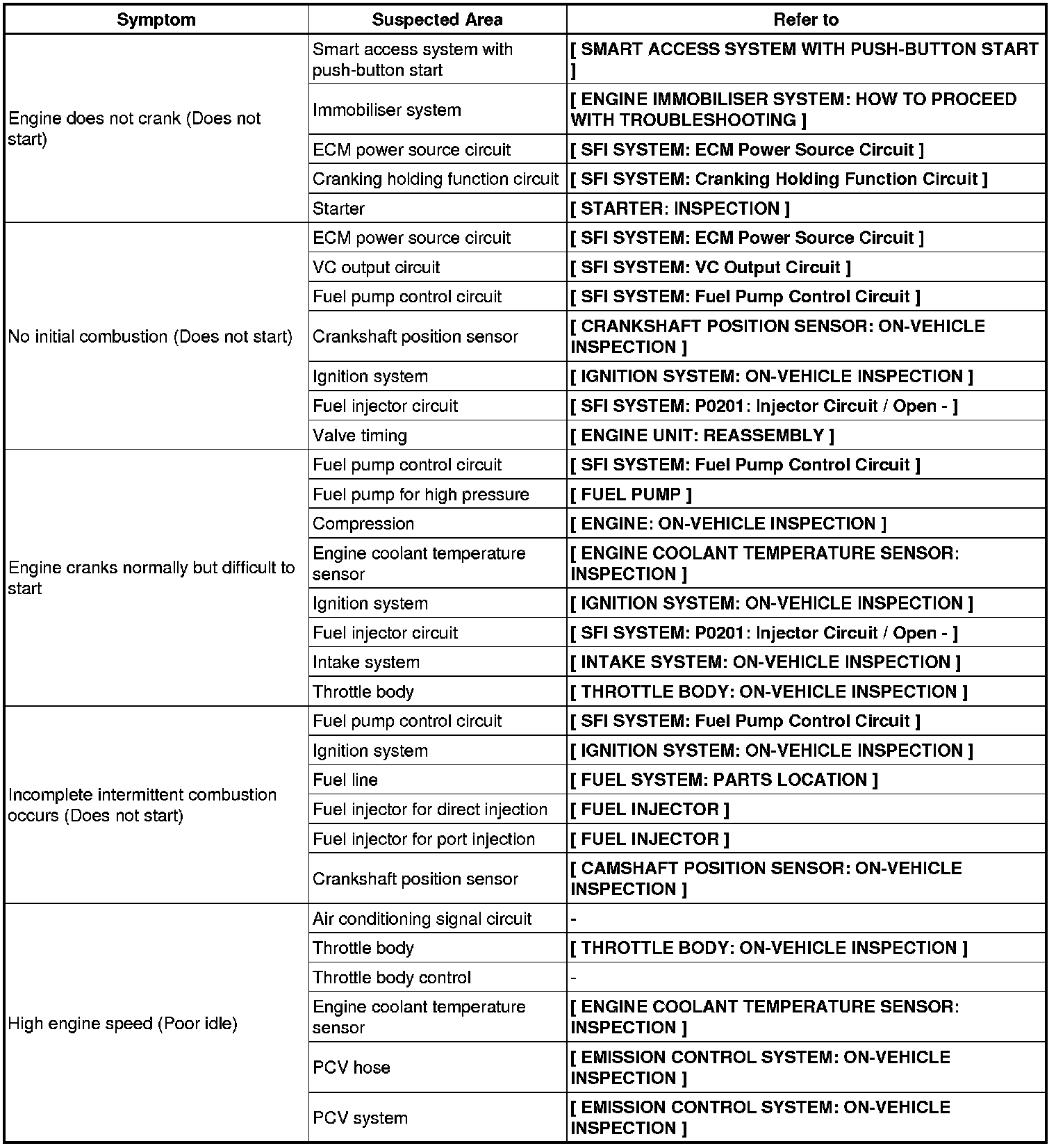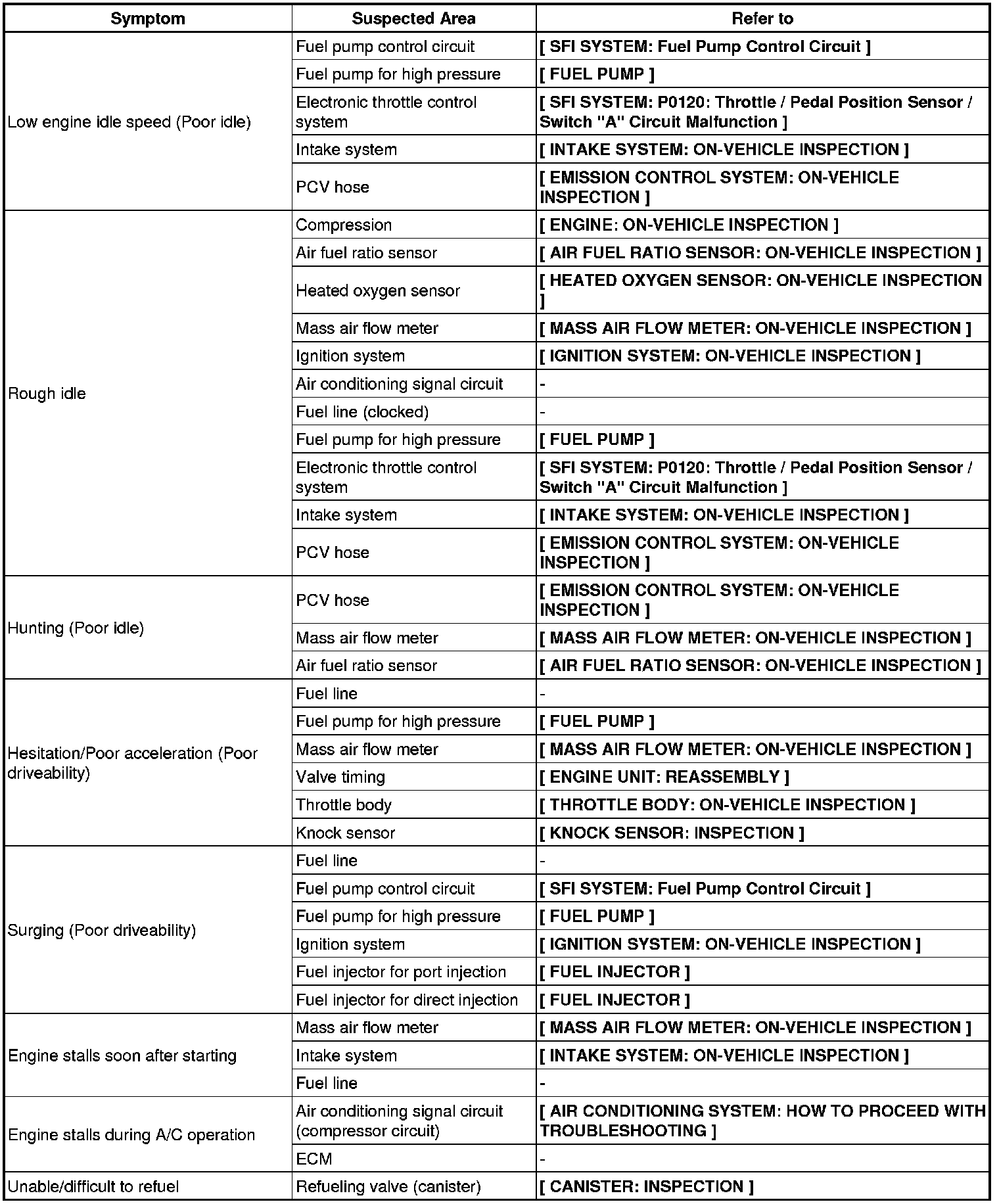 2UR-GSE ENGINE CONTROL: SFI SYSTEM: PROBLEM SYMPTOMS TABLE