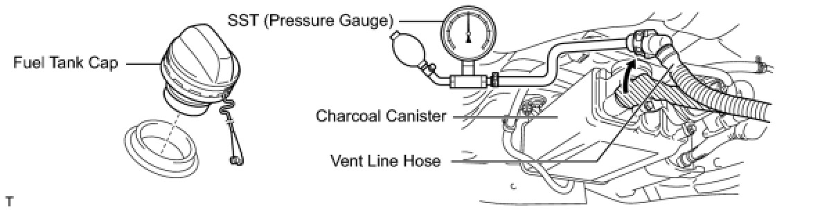 (e) Remove the fuel tank cap, and check that the pressure drops.