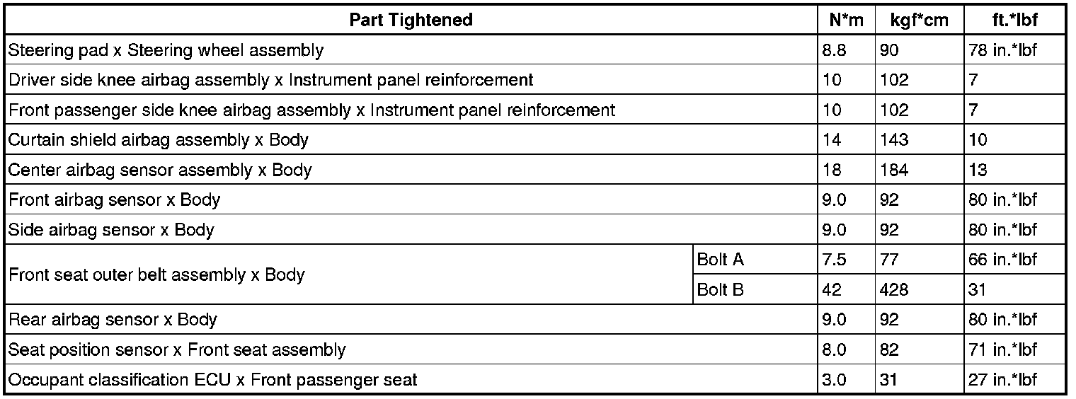 SPECIFICATIONS: SUPPLEMENTAL RESTRAINT SYSTEMS: TORQUE SPECIFICATIONS