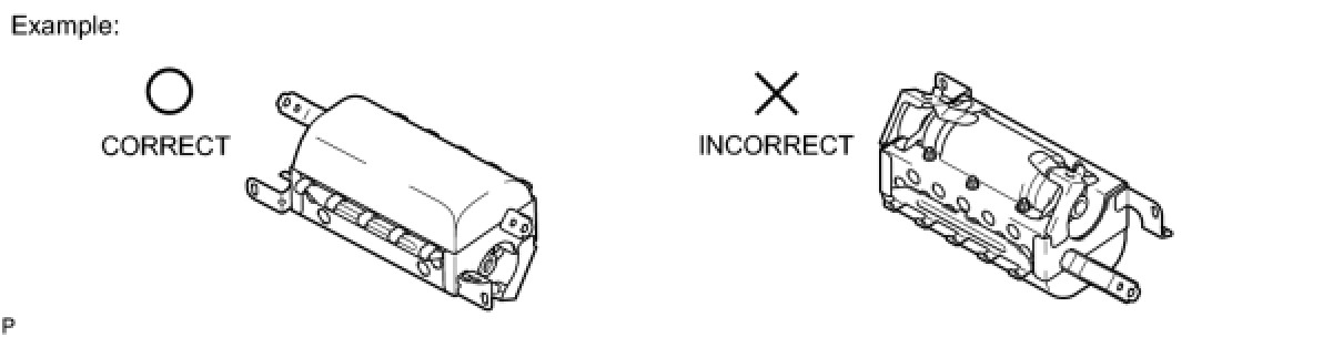 (1) Always place a removed or new driver side knee airbag assembly with the airbag deployment direction facing upward. Placing the airbag assembly with the airbag deployment direction facing downward could cause a serious accident if the airbag deploys.