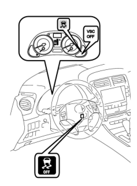 - When switching to VSC OFF mode, the VSC OFF switch must be held for 3 seconds or more with the vehicle stopped. TRAC and VSC operation must both be turned off before beginning testing.