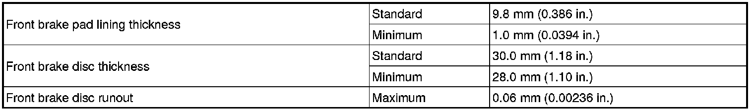 SPECIFICATIONS: BRAKE (FRONT): SERVICE DATA