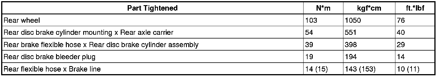 SPECIFICATIONS: BRAKE (REAR): TORQUE SPECIFICATIONS