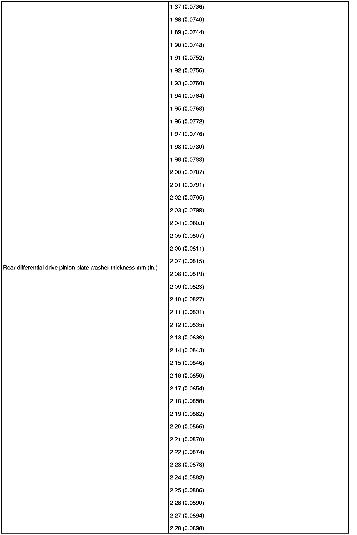 SPECIFICATIONS: AXLE AND DIFFERENTIAL: SERVICE DATA