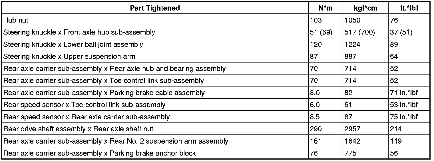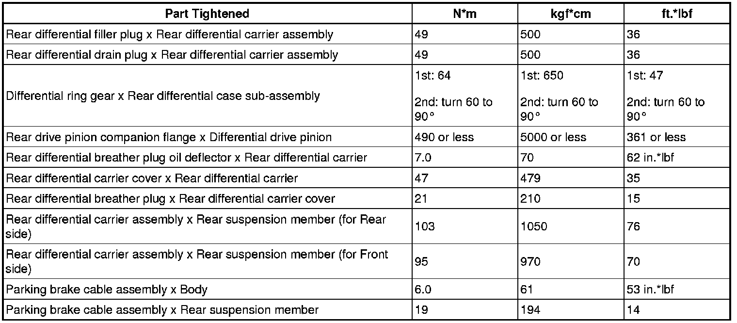 SPECIFICATIONS: AXLE AND DIFFERENTIAL: TORQUE SPECIFICATIONS