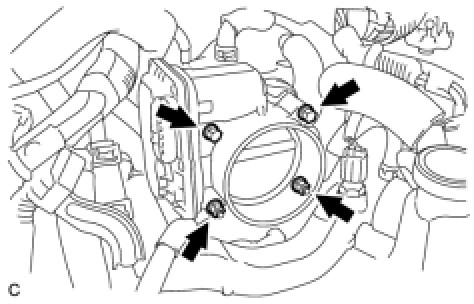 Set the throttle body assembly and new gasket with the 2 stud bolts.