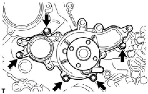 Install the water pump assembly and new water pump gasket with the 5