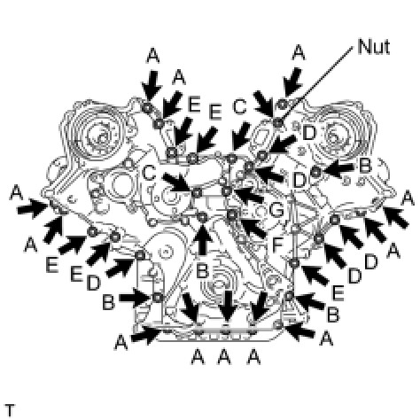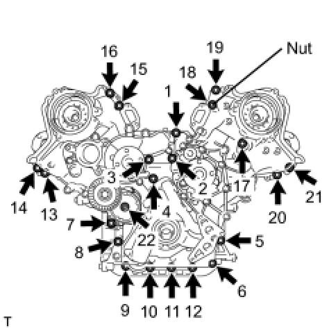 Tighten the 21 bolts and nut in several steps, in the sequence shown in the illustration.
