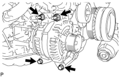 (b) Install the generator with the 2 bolts and 2 nuts.