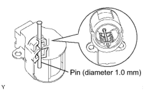 (a) Insert a pin (diameter 1.0 mm (0.039 in.)) into the generator brush holder assembly to secure the 2 brushes in place.