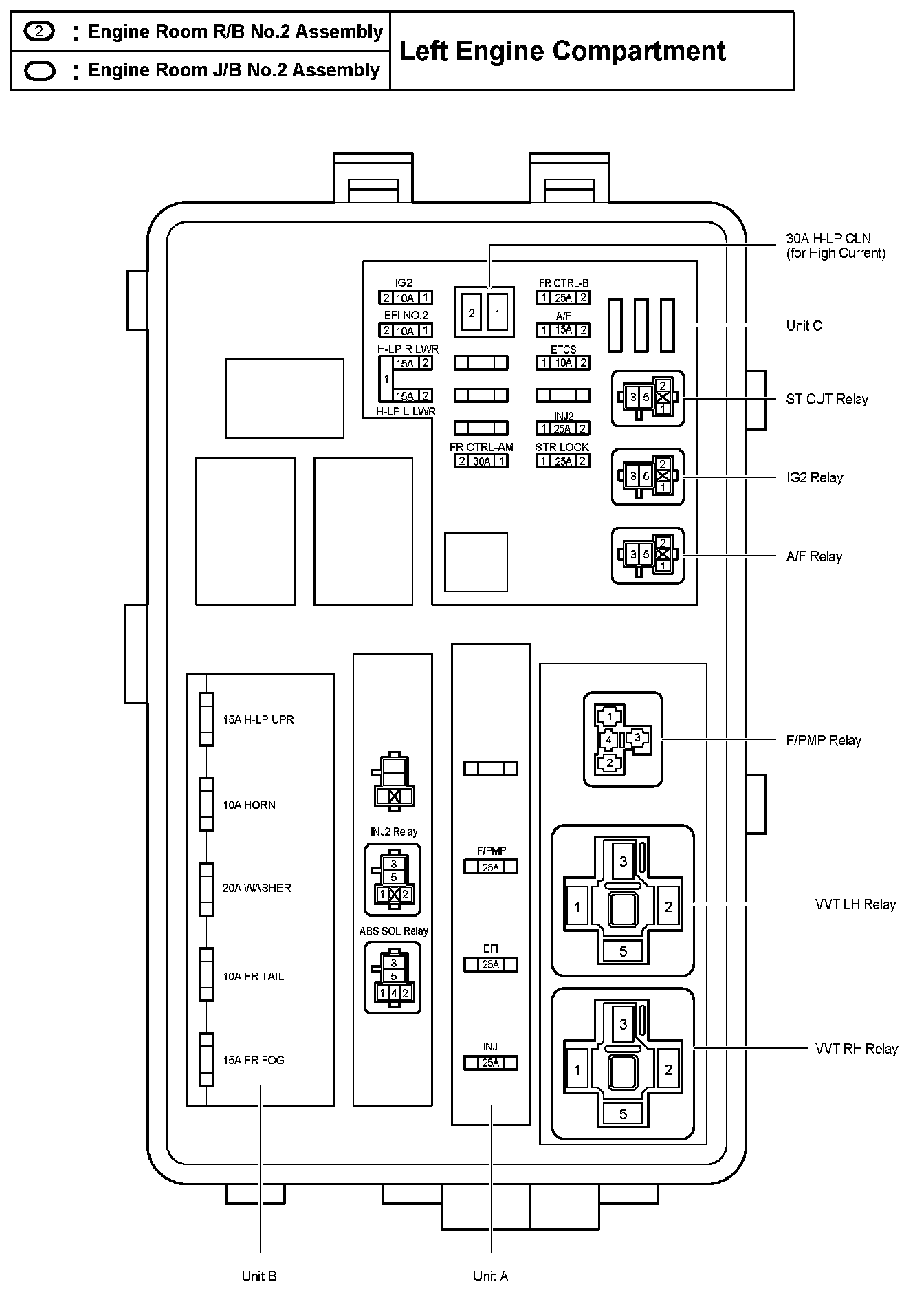 Engine Room R/B No.2, J/B No.2 Assembly - Left Engine Compartment: