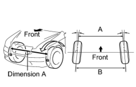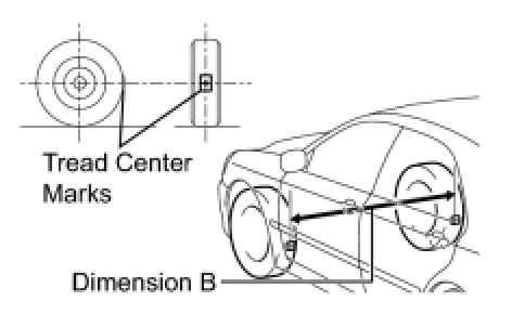 (d) Put tread center marks on the rearmost points of the front wheels and measure the distance between the marks (dimension B).
