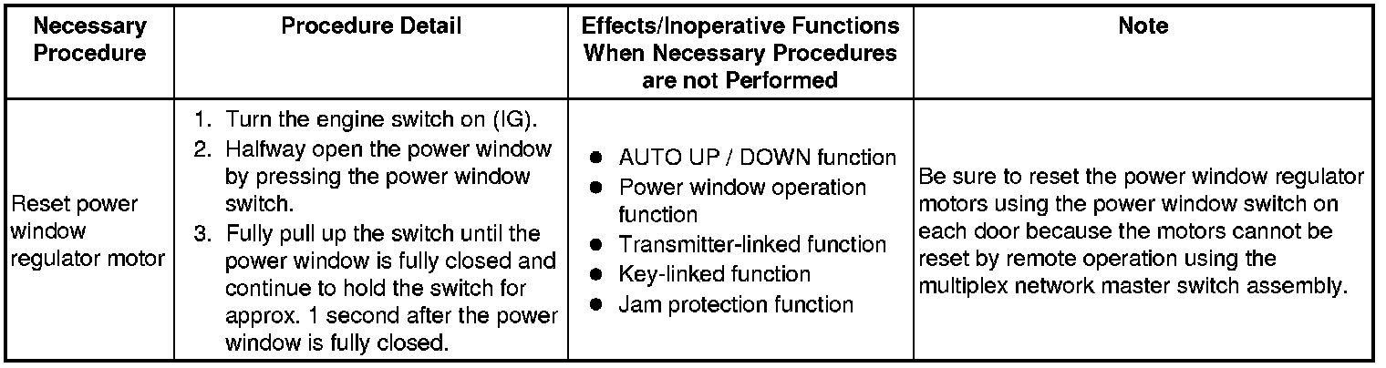 - Reset Memory cannot be completed by only disconnecting and reconnecting the cable to the negative (-) battery terminal.