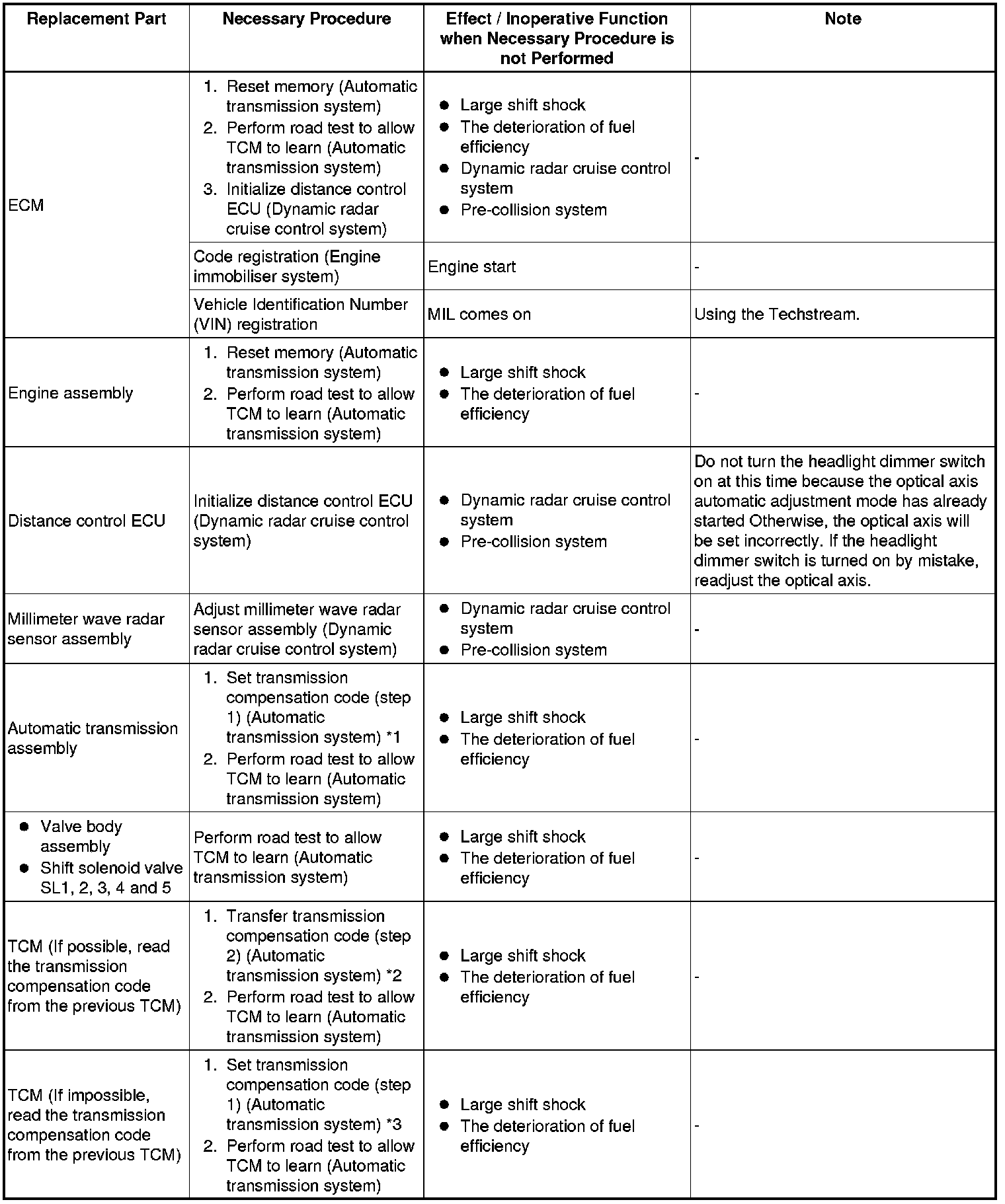 *2: Read the compensation code from the previous TCM, then transfer it to the new TCM.