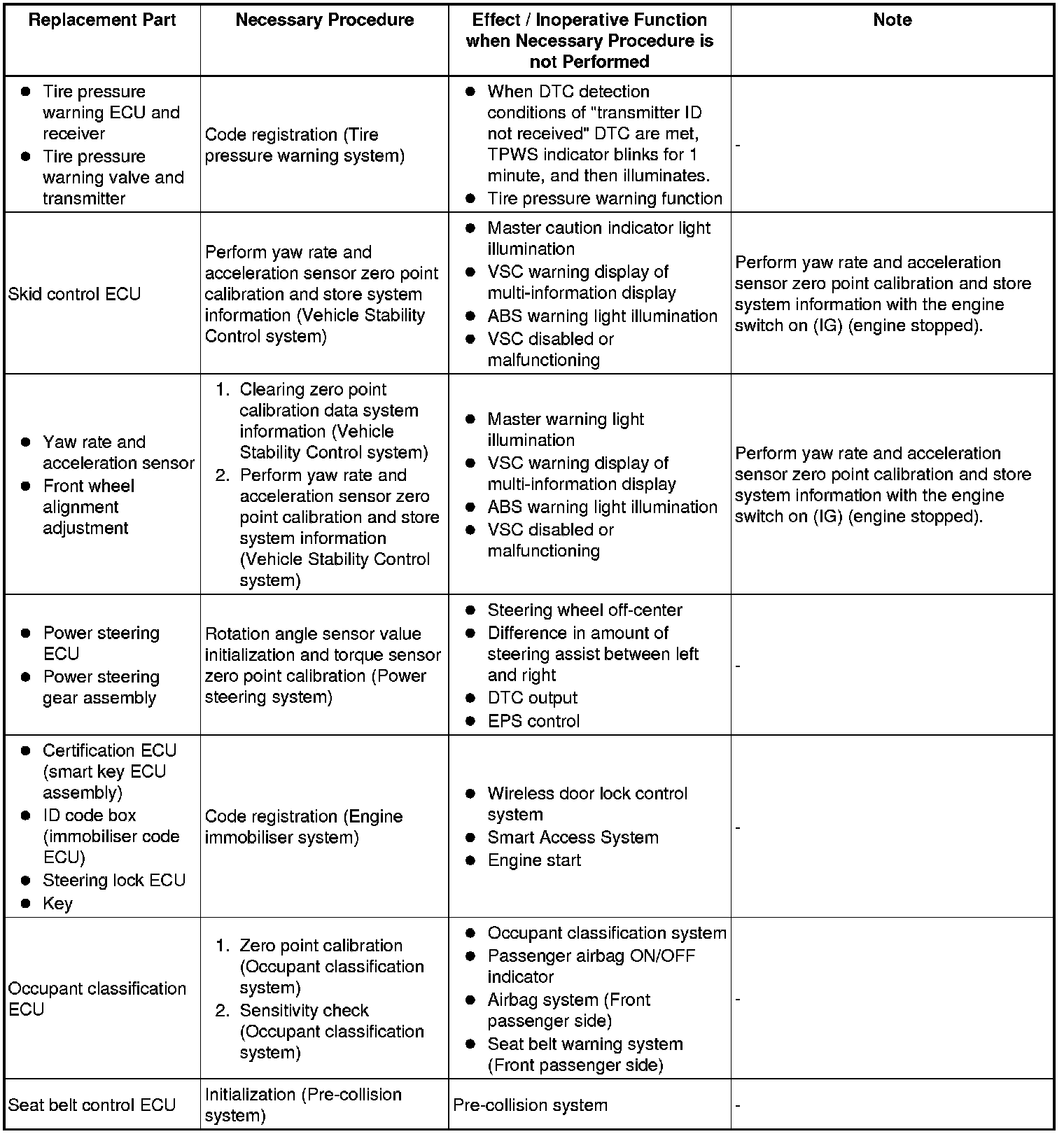 (a) The following table shows ECU replacement and key registration procedures for cases in which a malfunctioning ECU has been identified through the troubleshooting of the smart access system with push button start.