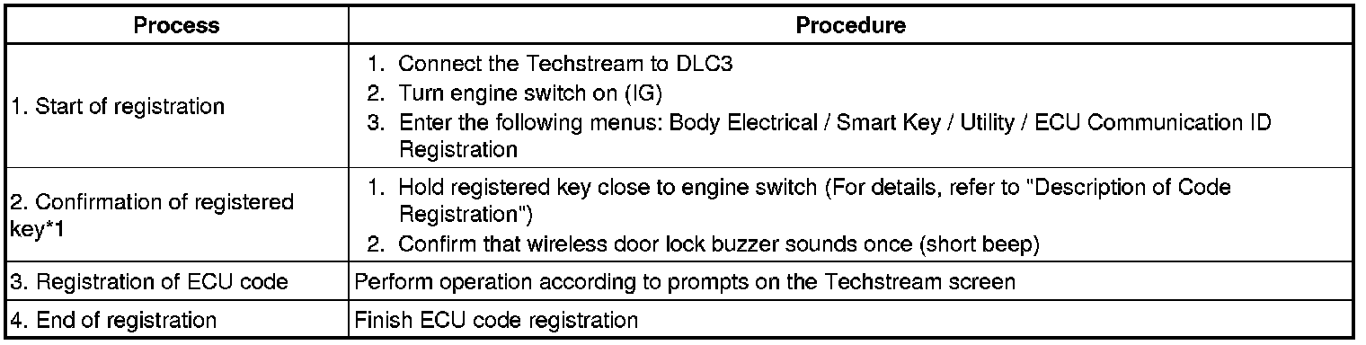 *1: Perform this process for one of the keys registered for the vehicle. Finish the procedure within 30 seconds. If the procedure has not been finished within the specified time, perform the registration procedures again from process 1.