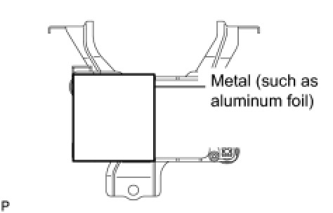 (3) Reset the radar sensor's driving learning values. Prepare a piece of metal that can block radio waves, such as aluminum foil. Cover the radar sensor's left half with the metal for 10 seconds.